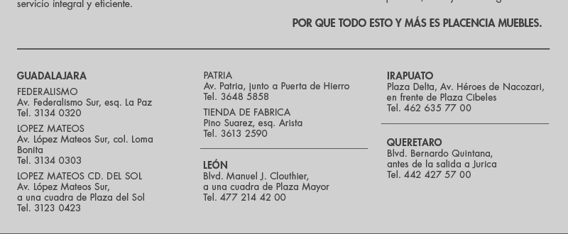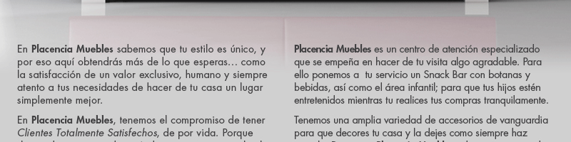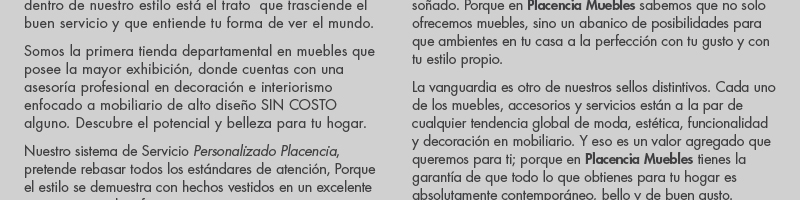 ventaslm@mueblesplacencia.comMuebles Placencia. Asesoría en amueblamiento y decoración, La más extensa variedad en estilos y diseños.